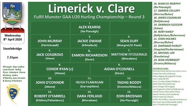 The very best of luck to Eamon, Aidan and the Limerick U20’s this evening as they take on Clare in sixmilebridge. The game is live on TG4.