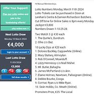 Lotto Numbers Monday, March 25th 2024Lotto Tickets can be purchased in Doon at Lenihan’s Centr...